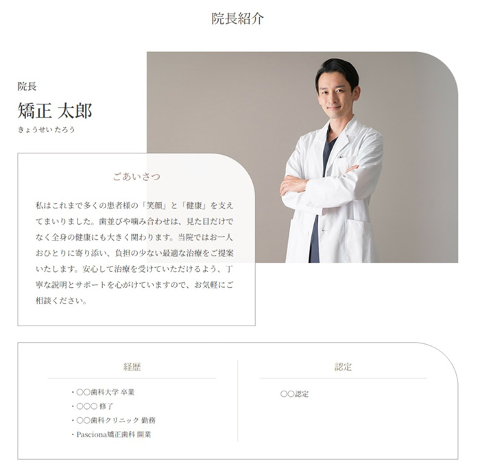 歯科医院のホームページにおいて、歯科医師の経歴や資格は、患者さまが安心感を得るための重要な情報のひとつです。